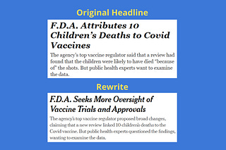 The New York Times aided the MAGA, anti-science FDA in its mission to undermine the public’s trust in life saving vaccines. Another example of editorial…